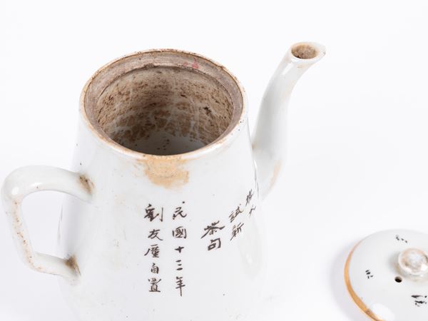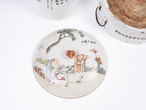 DUE TEIERE E UNA CIOTOLA CON COPERCHIO IN PORCELLANA, Cina, inizio XX secolo