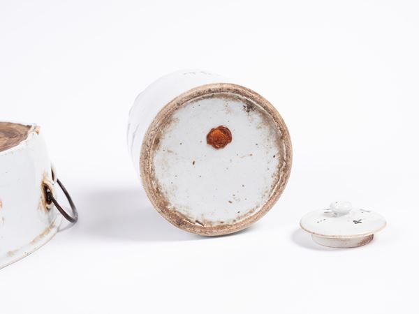 Dipinte con smalti policromi raffigurano personaggi e sul retro, come sui coperchi, recano iscrizioni.