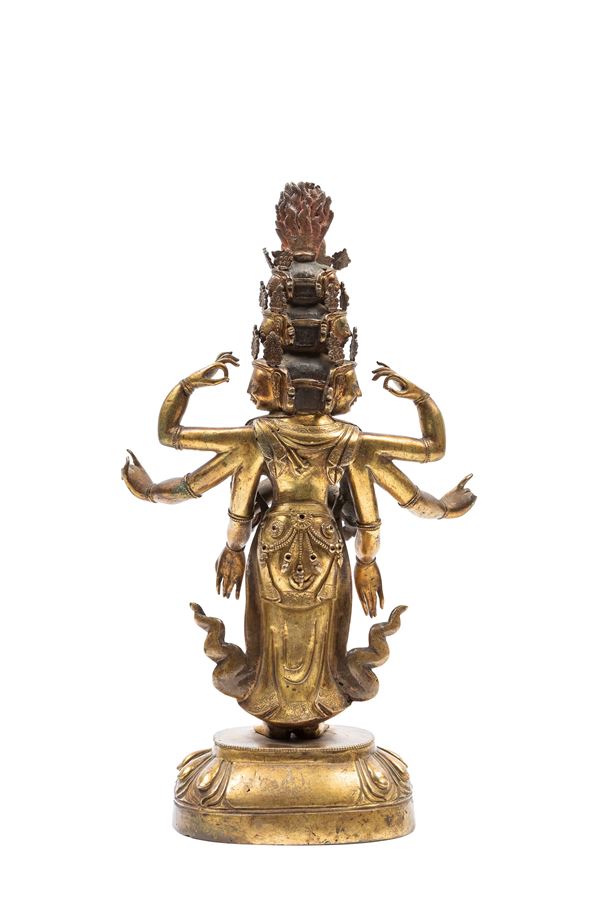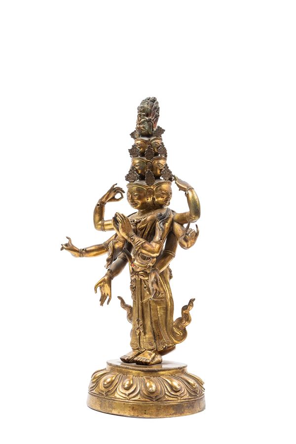 FIGURA DI AVALOKITESVARA IN BRONZO DORATO, Tibet - Cina, XVIII secolo