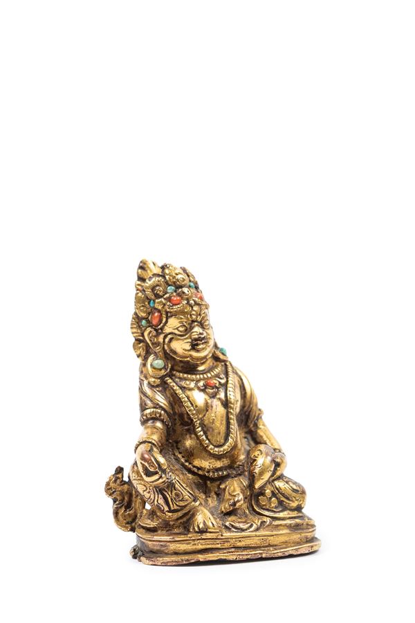 Raffigurante Kubera seduto nella postura dell'agio regale con in mano attributi, è ben ornato da turchesi e pietre dure.