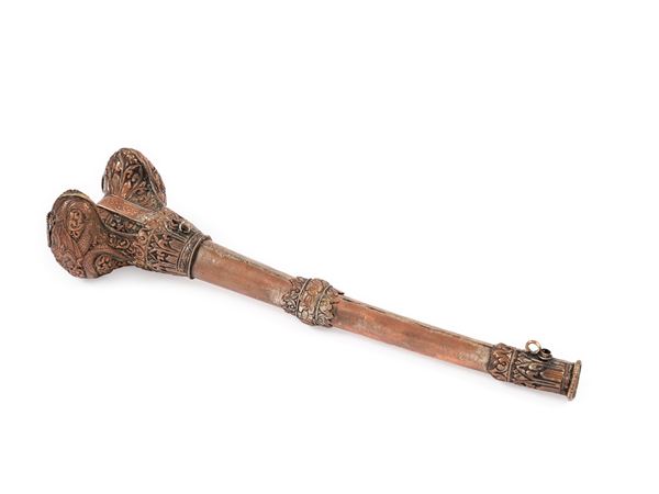 FLAUTO RITUALE IN OSSO E RAME, Himalaya, XIX / XX secolo