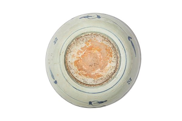 GRANDE PIATTO IN PORCELLANA BIANCA E BLU, Cina, dinastia Ming, XVII secolo