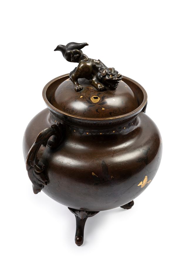 INCENSIERE TRIPODE IN BRONZO, Giappone, periodo Meiji (1868-1912)