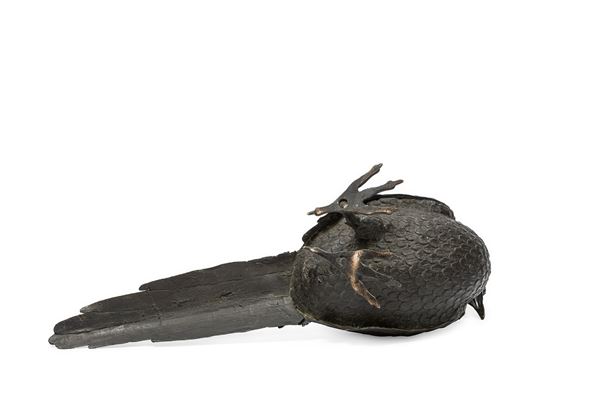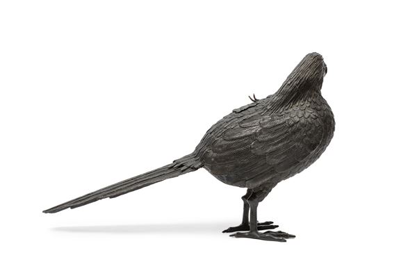 Raffigurante un fagiano con dettagli e piume finemente cesellati e incisi.