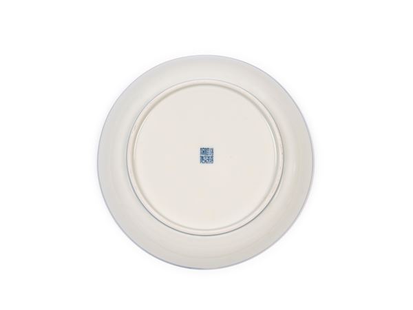 PIATTO IN PORCELLANA BIANCA E BLU, Cina, XX secolo
