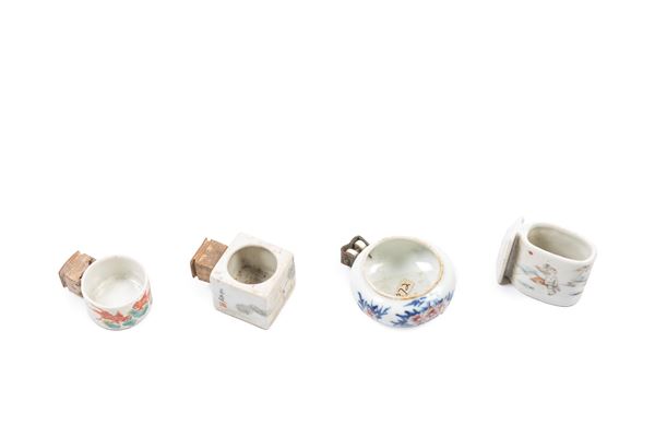 QUATTRO ABBEVERATOI IN PORCELLANA FAMIGLIA ROSA, Cina, inizio XX secolo