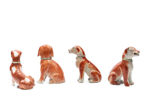 QUATTRO CANI IN PORCELLANA, Cina, dinastia Qing, XVIII secolo