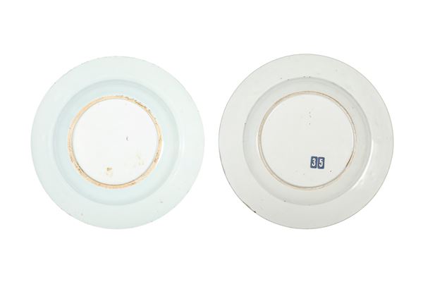 RARA COPPIA PIATTI IN PORCELLANA COLOR PULCE E BIANCO SOPRA BIANCO, Cina, dinastia Qing, XVIII secolo
