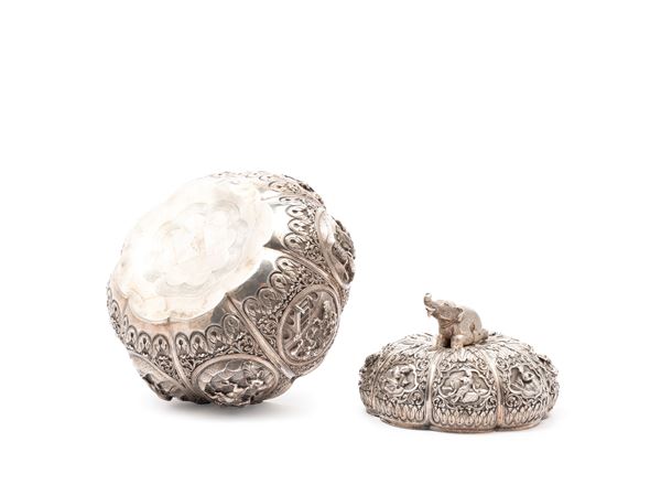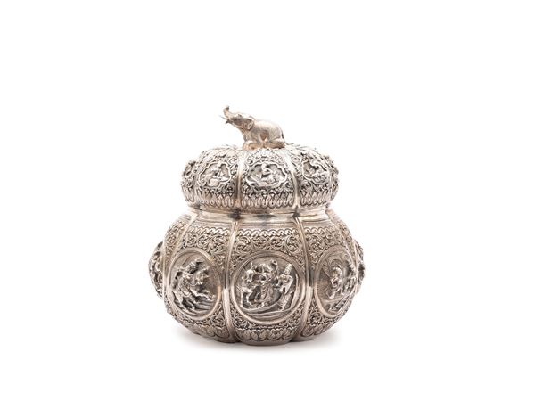 SCATOLA IN ARGENTO, Birmania, XIX secolo