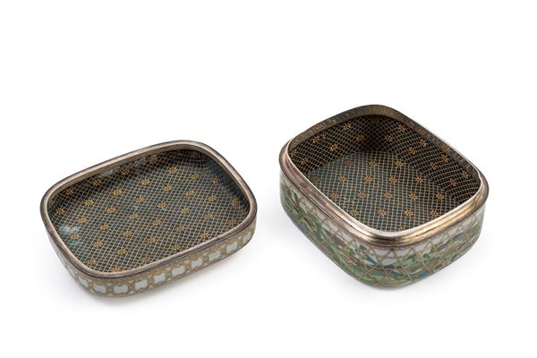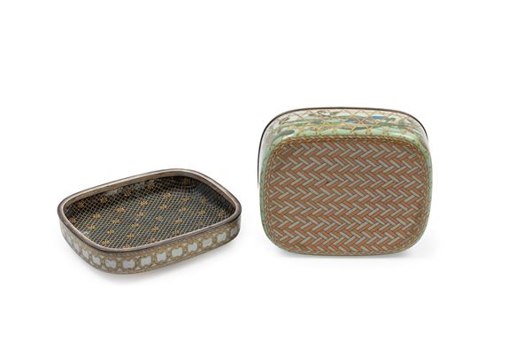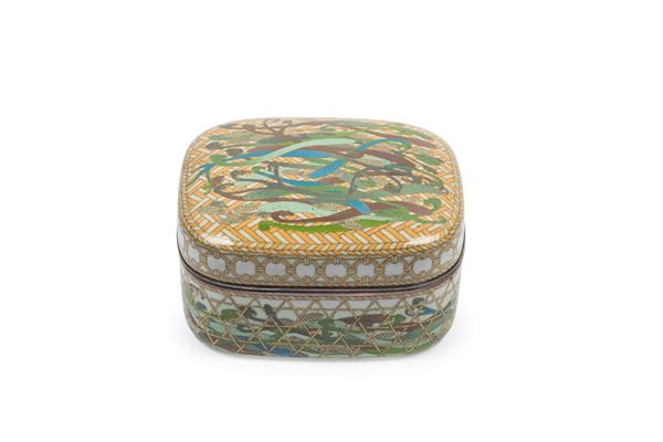 SCATOLA RETTANGOLARE IN SMALTO CLOISONNÉ, Giappone, periodo Meiji (1868-1912)