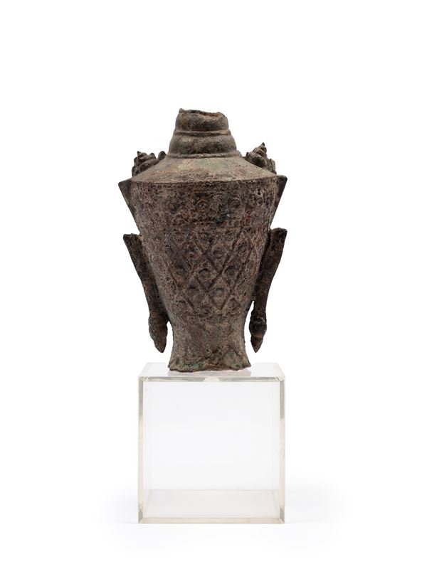 TESTA DI BUDDHA IN BRONZO, Tailandia, XVII / XVIII secolo