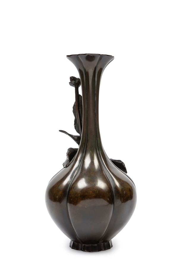 VASO IN BRONZO PATINATO, Giappone, periodo Meiji (1868-1912)