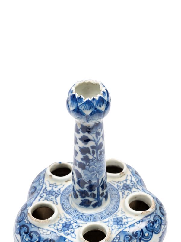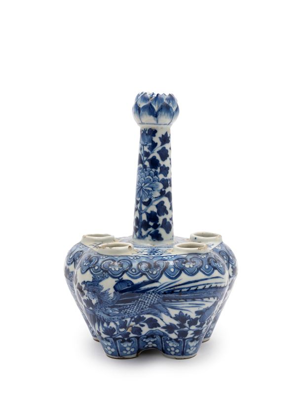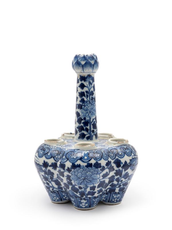 VASO PORTA TULIPANI IN PORCELLANA BIANCA E BLU, Cina, dinastia Qing, fine XIX secolo