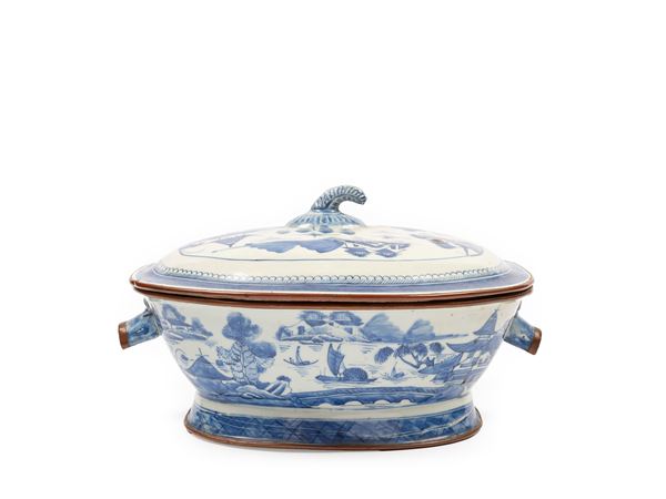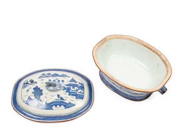 ZUPPIERA CON COPERCHIO IN PORCELLANA BIANCO E BLU, Cina, dinastia Qing, XIX secolo
