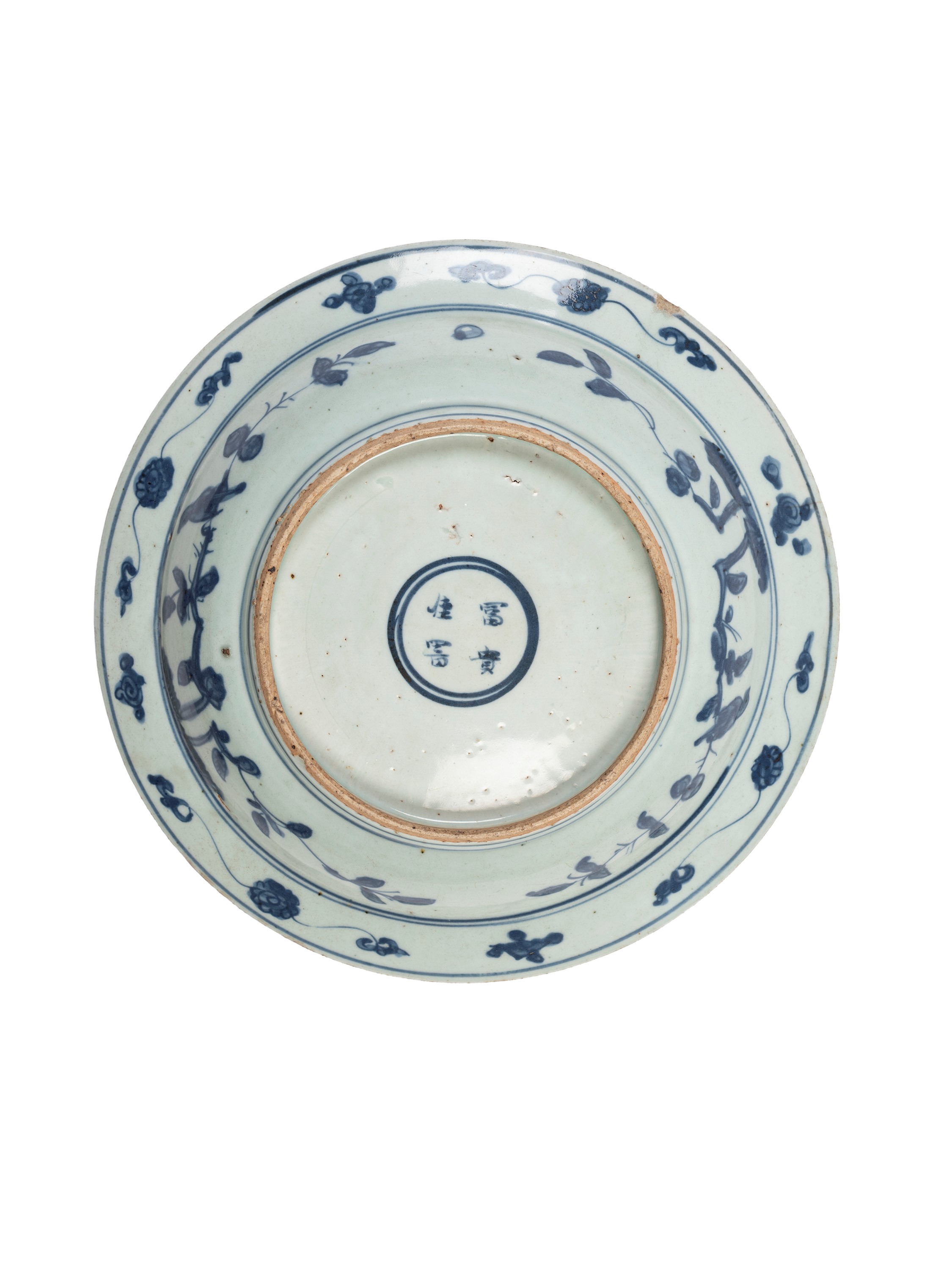 RARO PIATTO IN PORCELLANA BIANCA E BLU, Cina, dinastia Ming, periodo Jiajing (1521-1567)