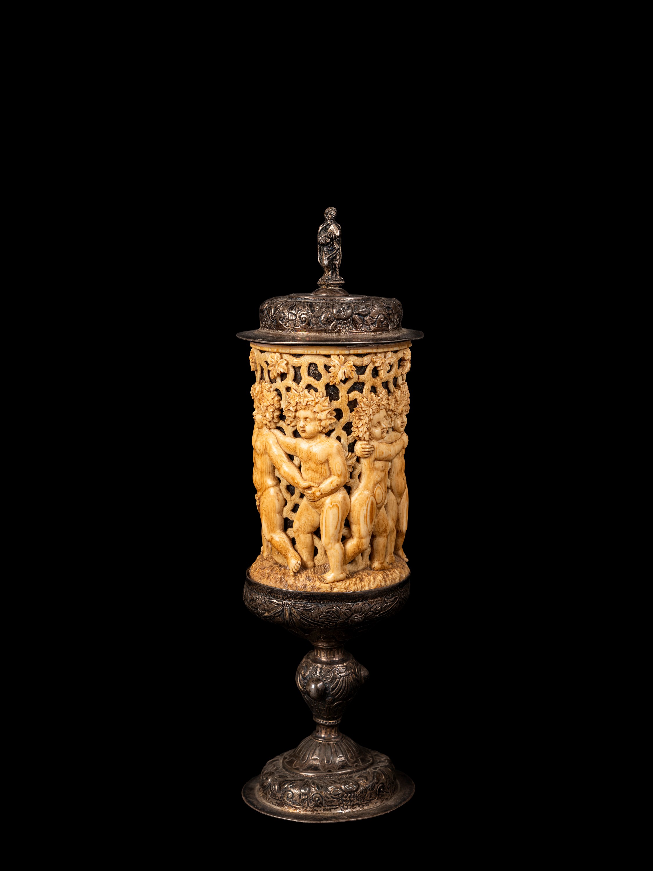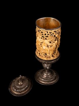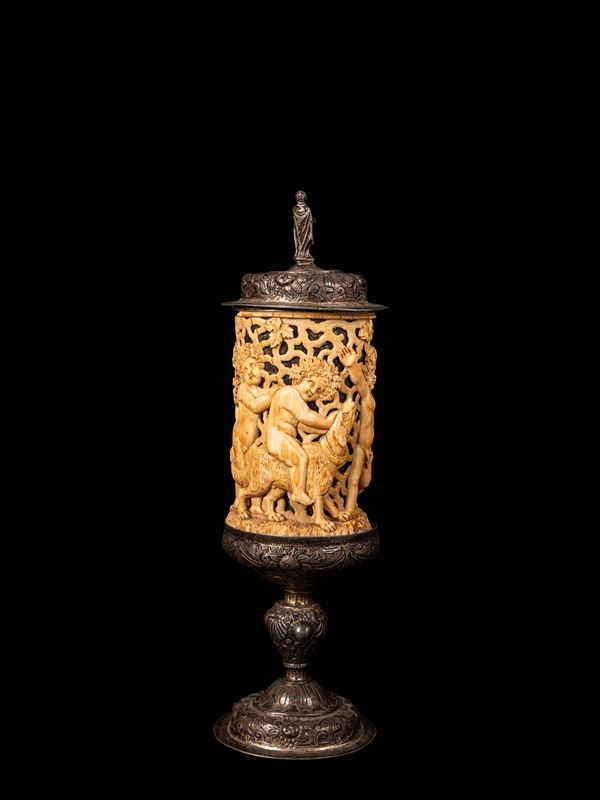 ☼CALICE IN AVORIO E ARGENTO, Germania, seconda metà del XIX secolo