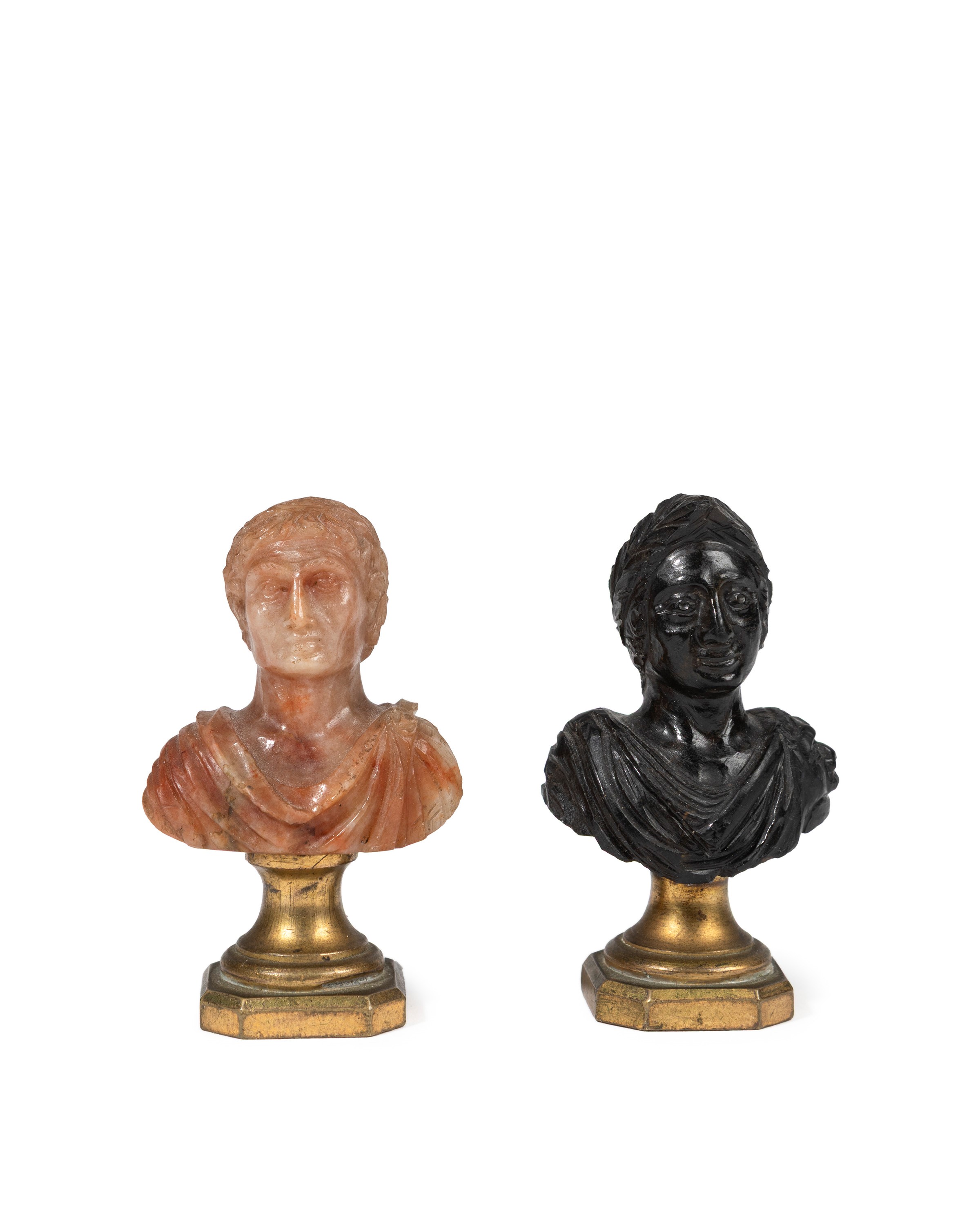 Raffiguranti due Imperatori con base in bronzo dorato.