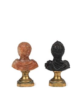 COPPIA BUSTI IN PIETRA DURA, Roma, XVIII secolo
