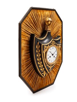Coppia formata da una pendola e un barometro da parete a forma di picca in bronzo dorato e patinato, entrambi sormontati da una sfera armillare.