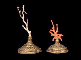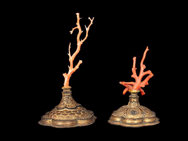 ☼COPPIA DI BASI PER CALICI CON RAMO DI CORALLO, Toscana, XVII secolo