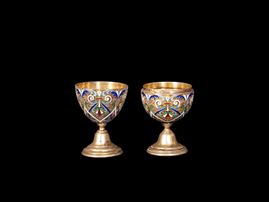 DUE COPPETTE DA VIAGGIO IN ARGENTO E SMALTO GUILLOCHE, Russia, fine XIX secolo