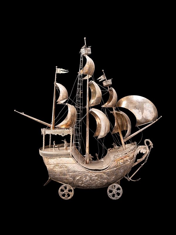 GRANDE VELIERO IN ARGENTO, Hanau, fine XIX secolo