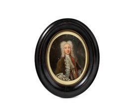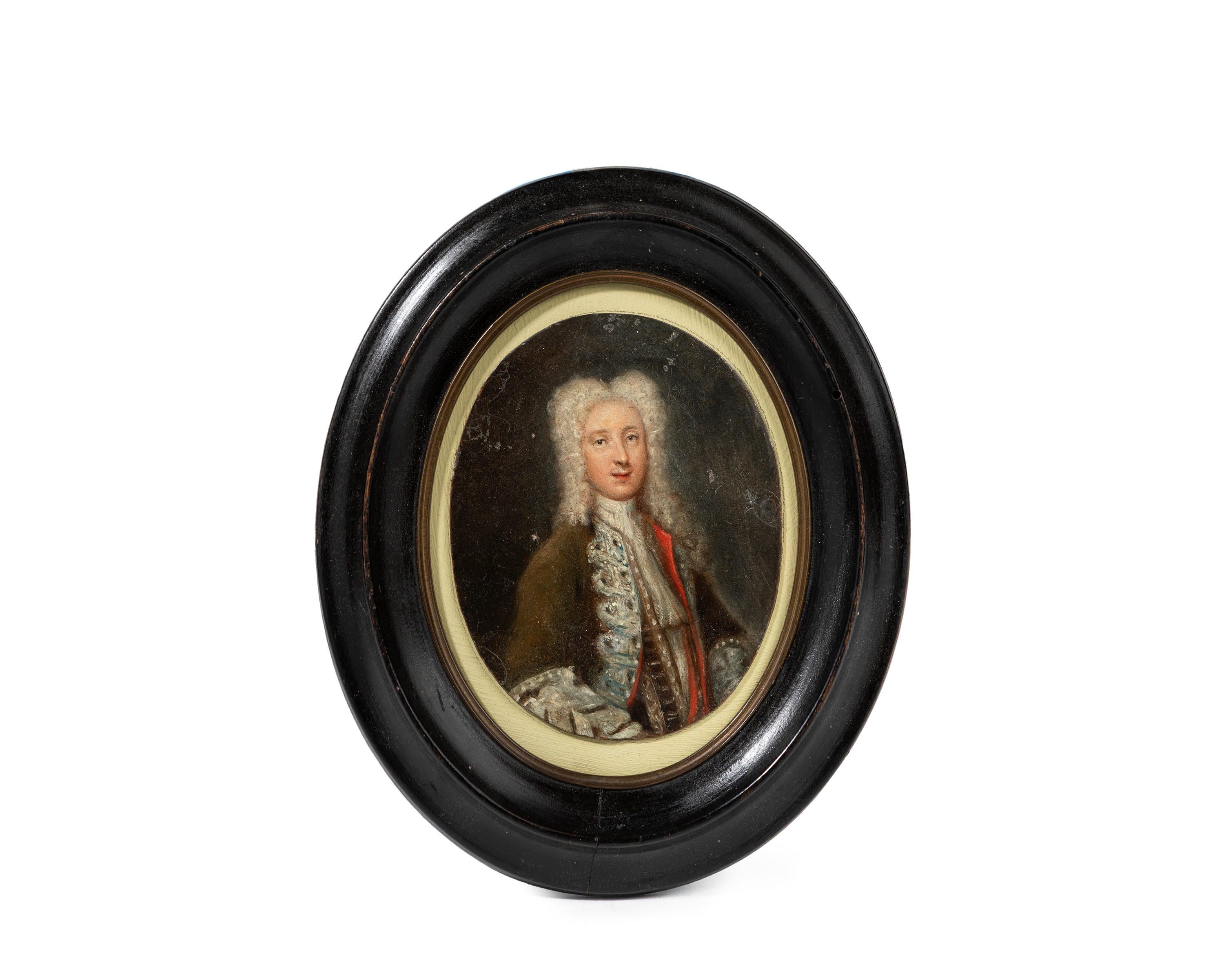MINIATURA SU RAME RAFFIGURANTE CON CORNICE IN LEGNO NERO, Francia, XVIII secolo