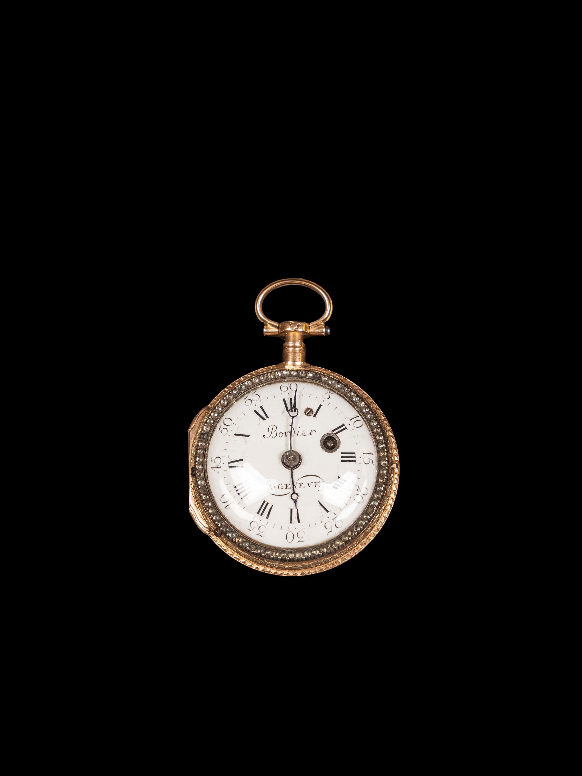 OROLOGIO DA TASCA IN ORO GINEVRA FIRMATO BORDIER, XVIII Secolo
