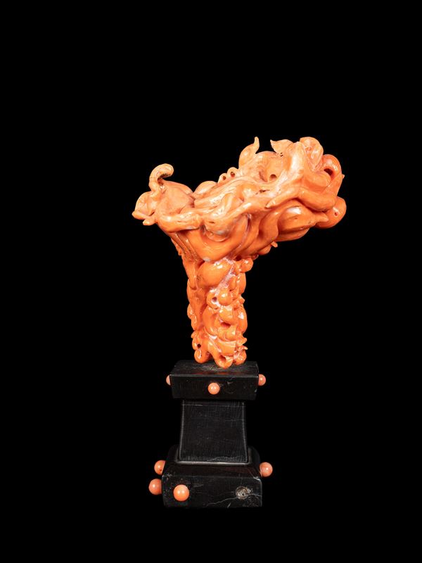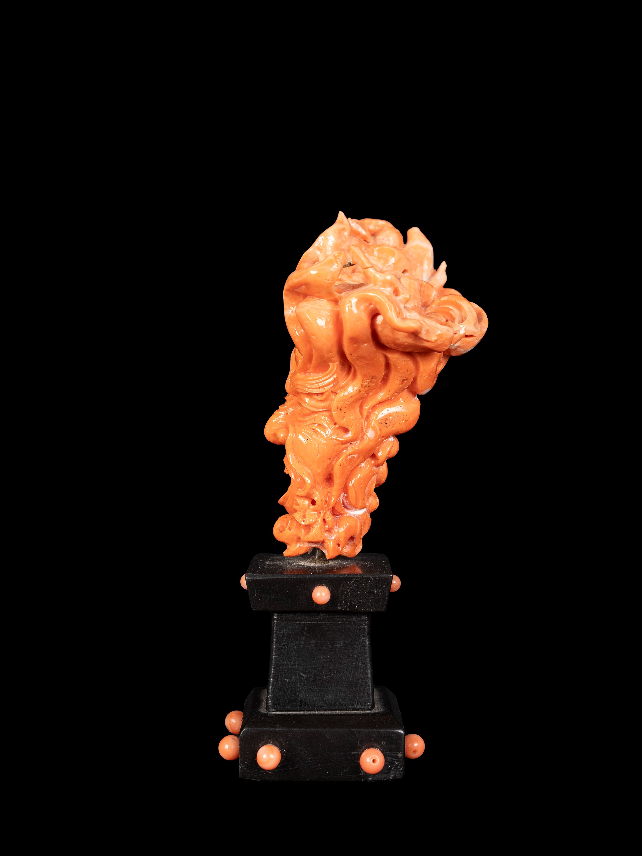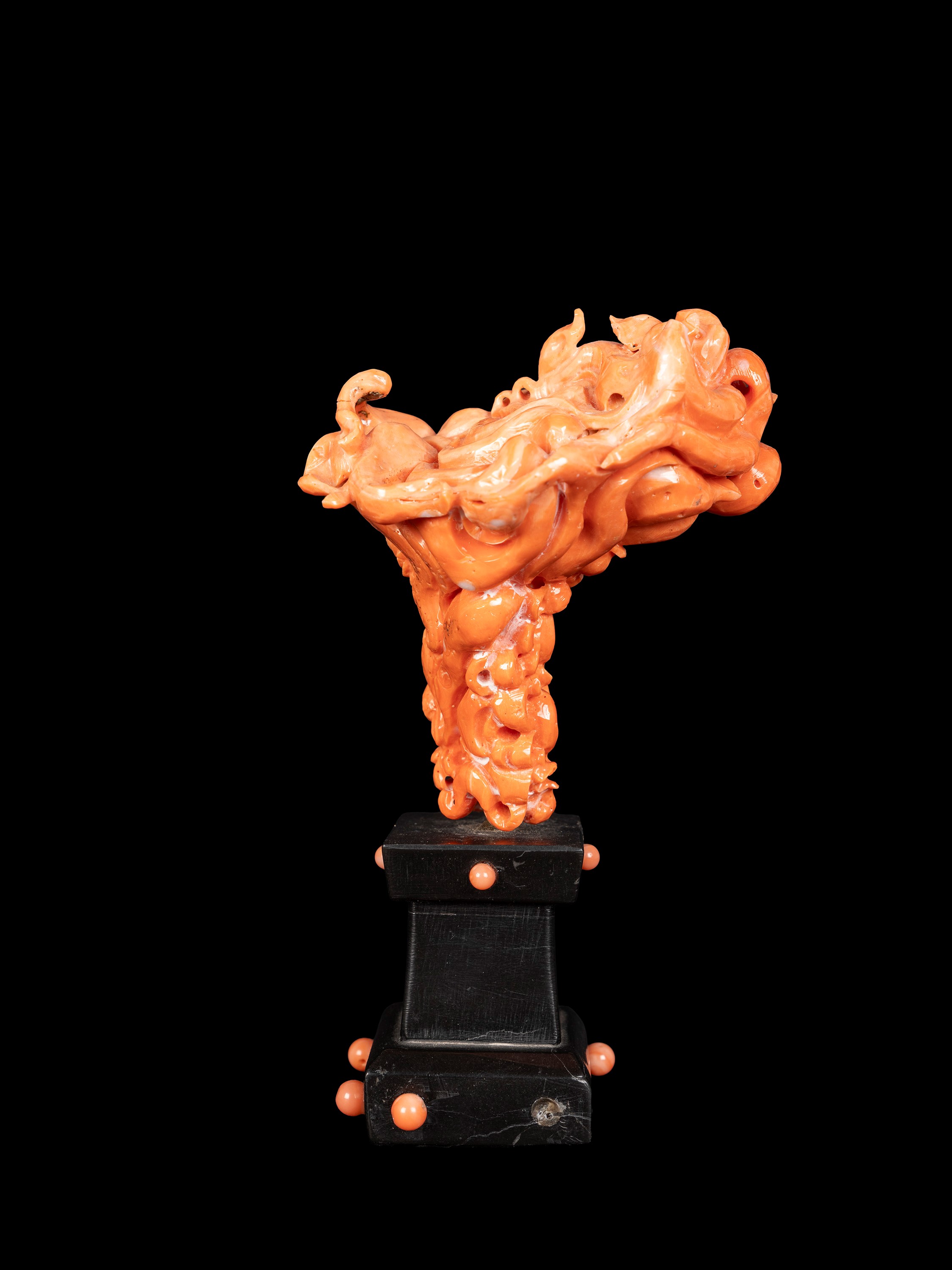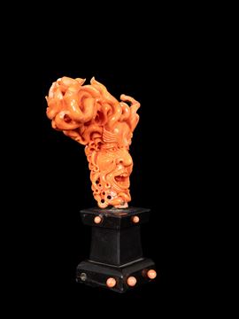 Finemente scolpito, raffigura una figura grottesca poggiante su una base in marmo nero. Peso g 124.
