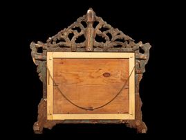 Raffigurante paesaggio rurale, entro cornice in legno intagliato e dorato.