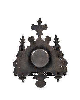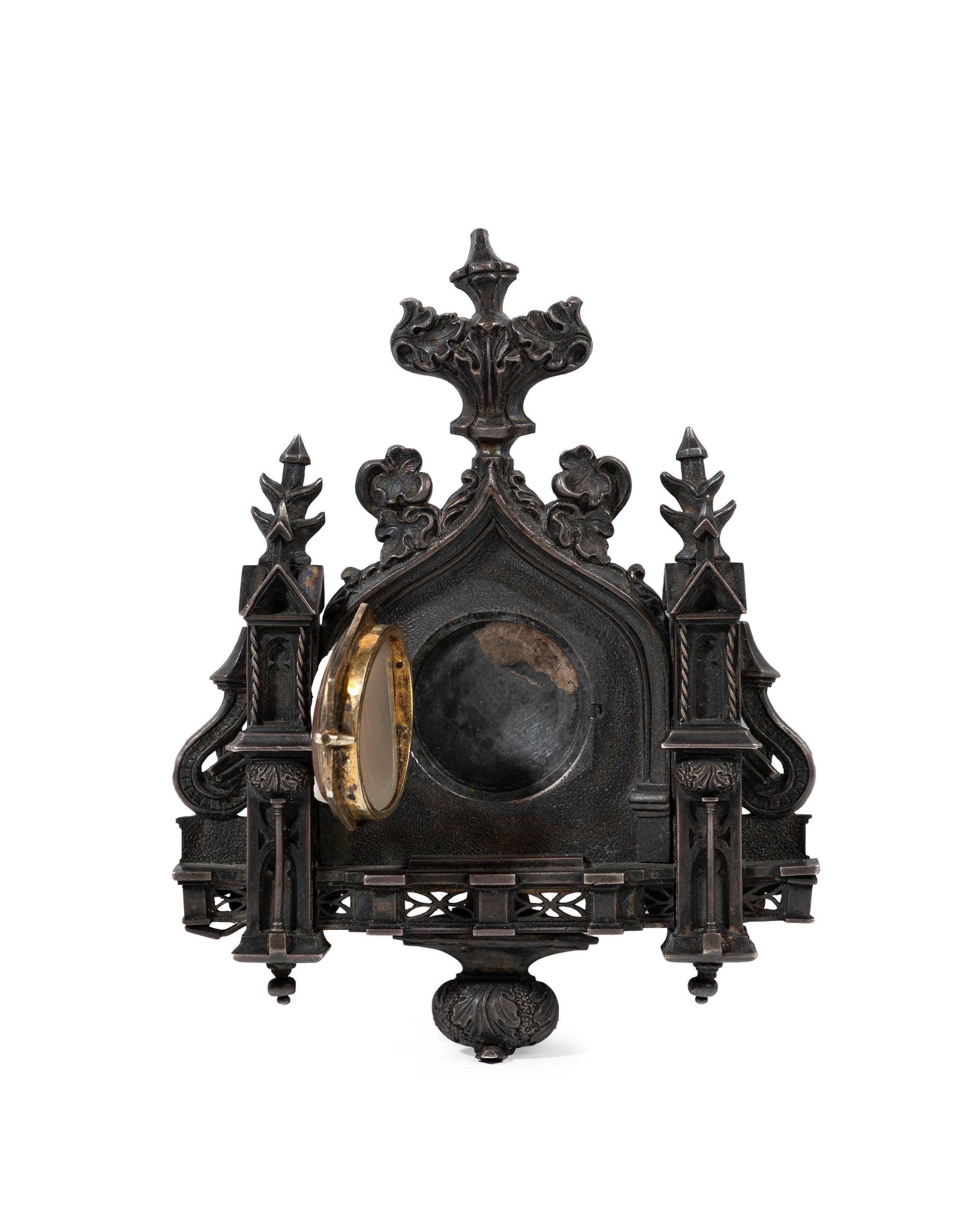 Raffigurante San Carlo Borromeo, entro una cornice a tabernacolo in argento con motivi a volute e foglie.