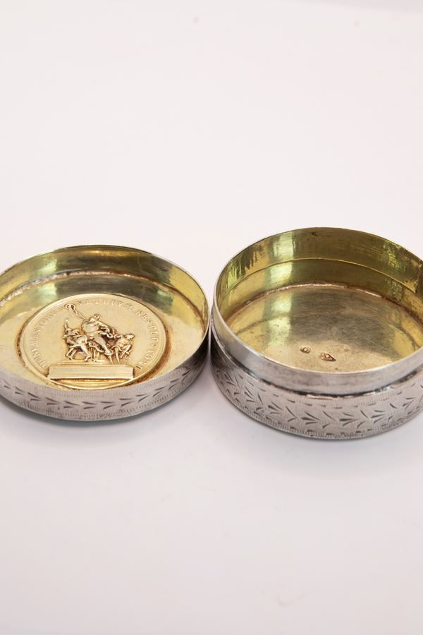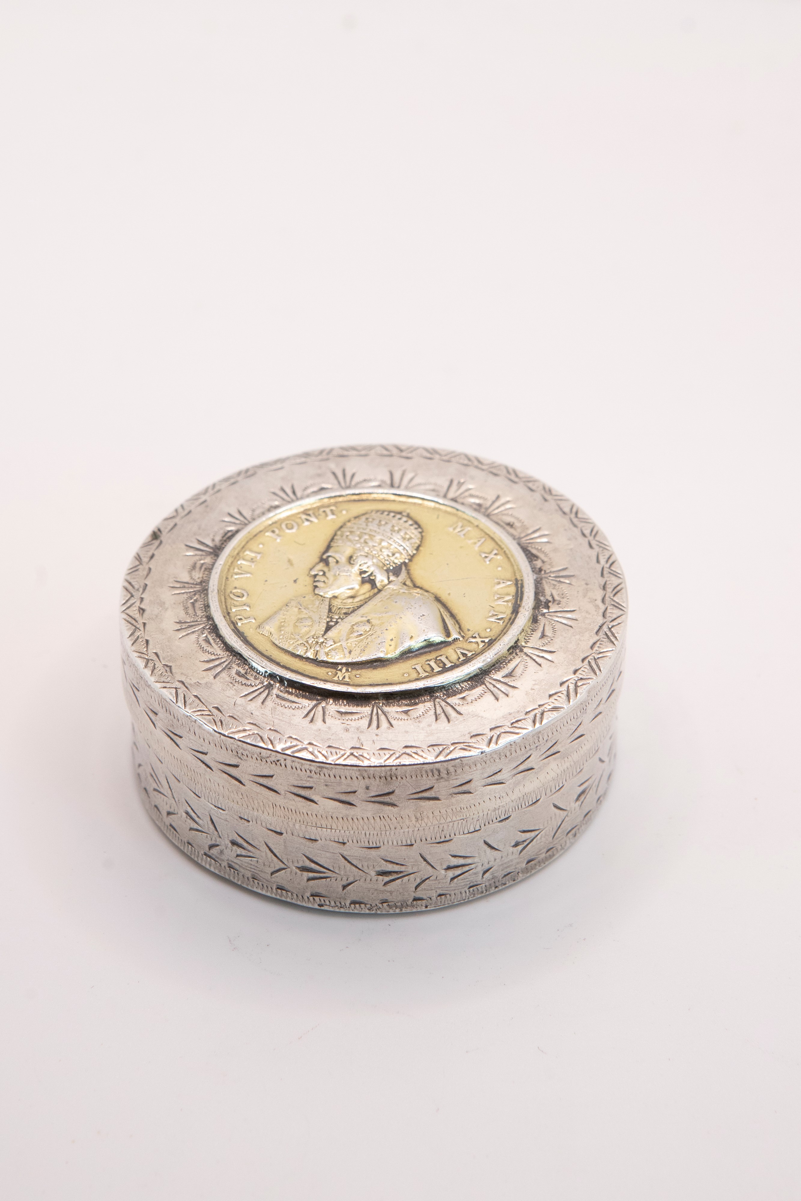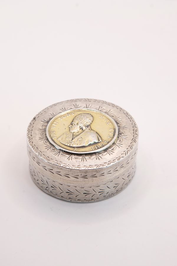 RARA TABACCHIERA IN ARGENTO CON MEDAGLIA COMMEMORATIVA DI PIO VII, Roma, 1817