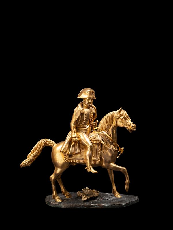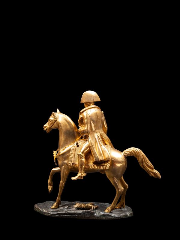 SCULTURA EQUESTRE DI NAPOLEONE IN BRONZO DORATO, Francia, XIX secolo
