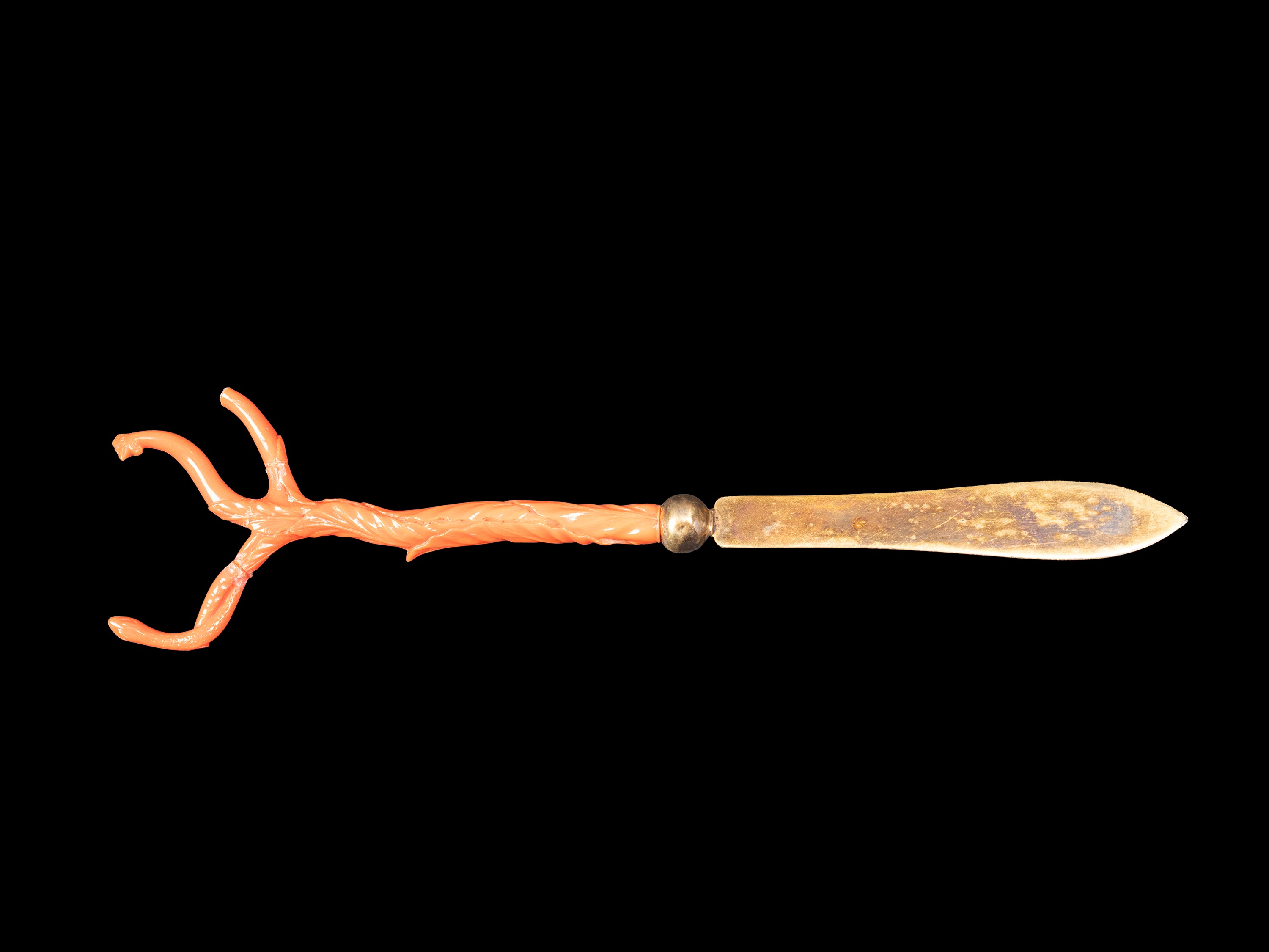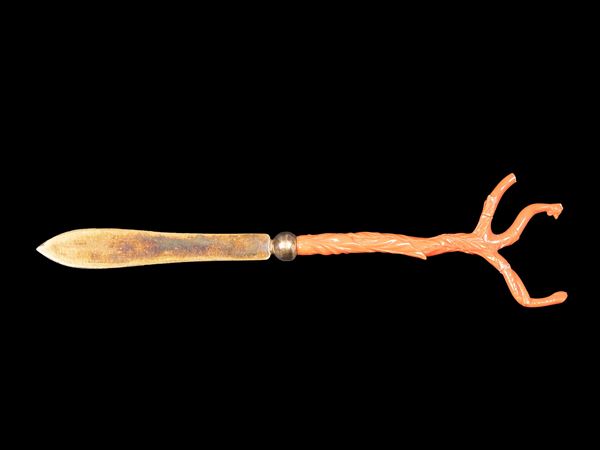 ☼TAGLIACARTE IN CORALLO E ARGENTO, Napoli, fine XIX secolo