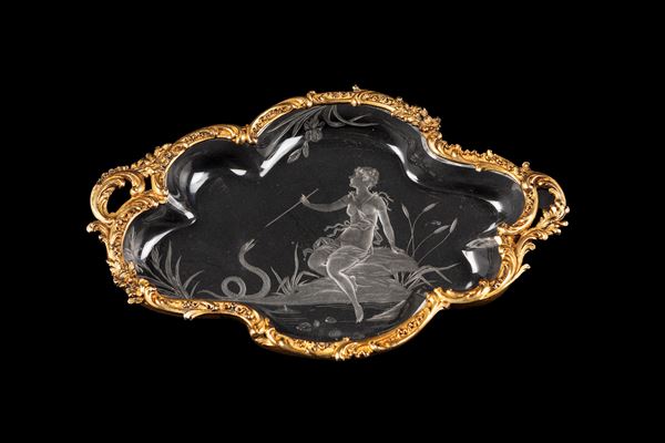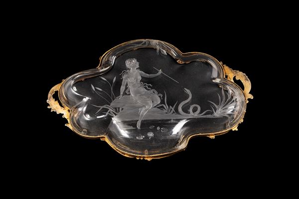 VASSOIO IN CRISTALLO E ARGENTO, Austria, XIX secolo