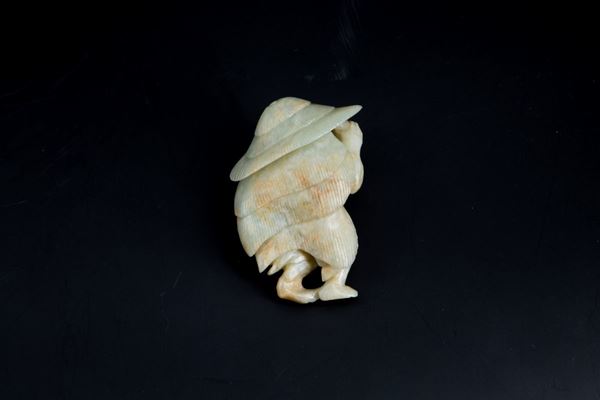 A CELADON AND RUSSET JADE STANDING FISHERMAN, China, 17th century
