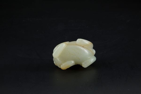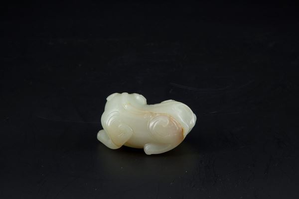 A WHITE JADE AND RUSSET BIXIE, China, Qing dynasty, 18th century