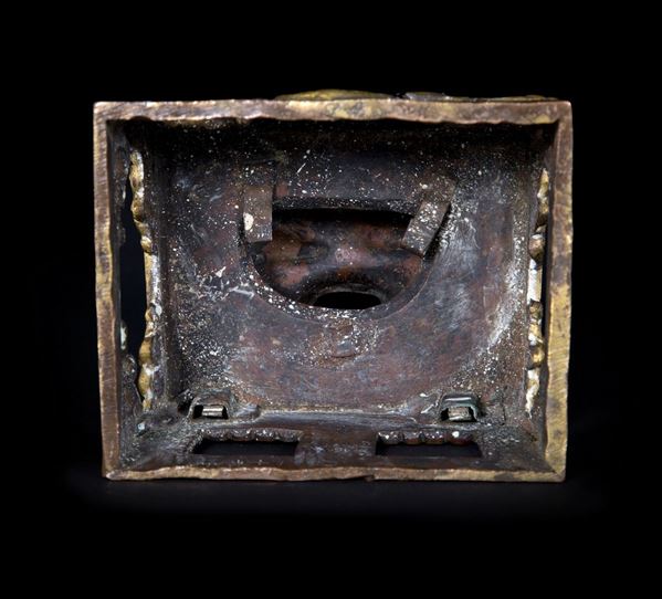 Gilt bronze figure of the Buddha Amitayus with flame seated on a pedestal. It bears the six-character mark of the Qianlong Emperor and the date geng yin (庚寅) corresponding to the year 1770.