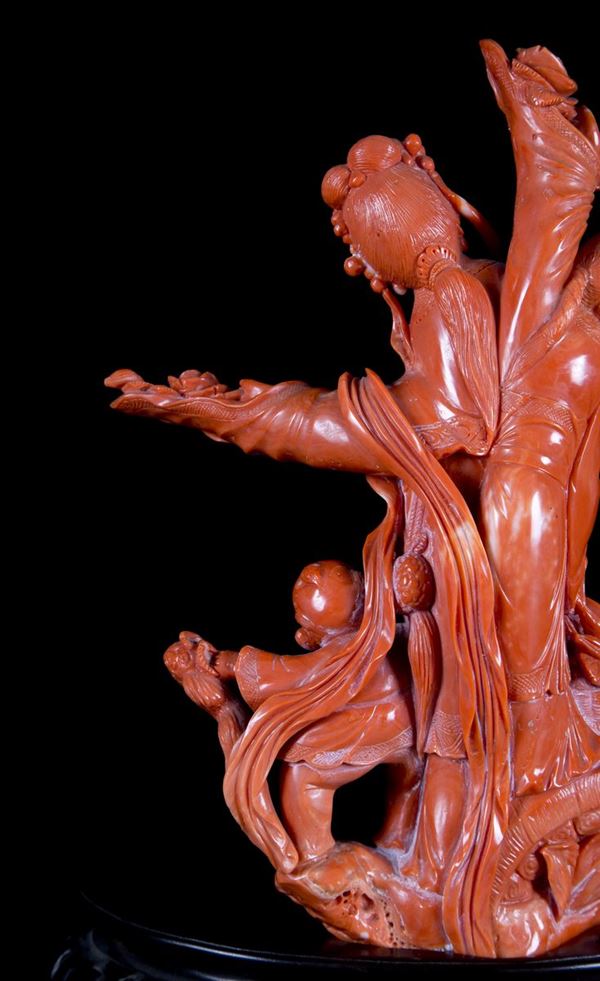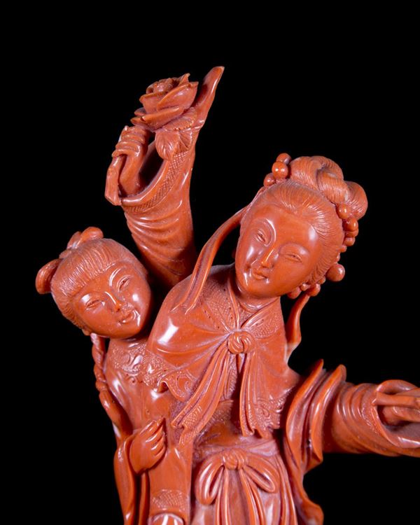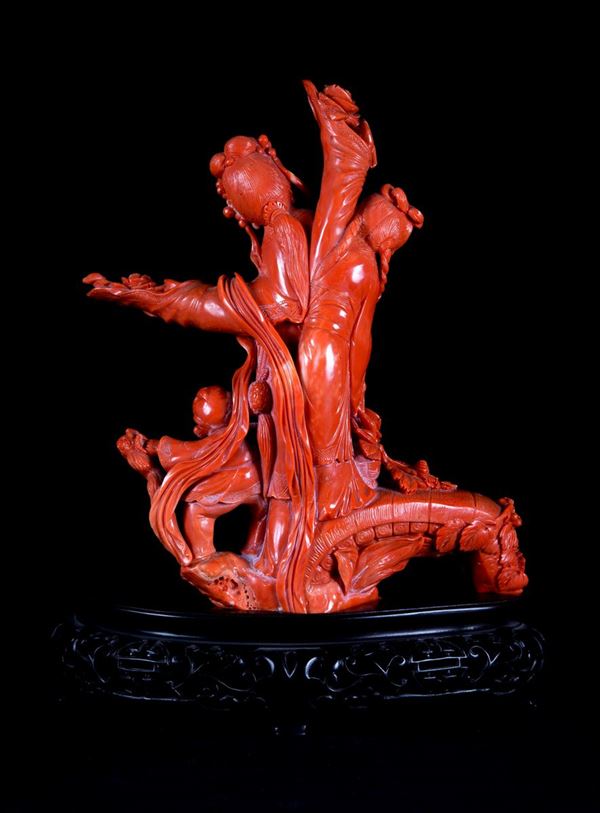GROUP IN RED CORAL BEIJING WORKMANSHIP, China, early 20th century