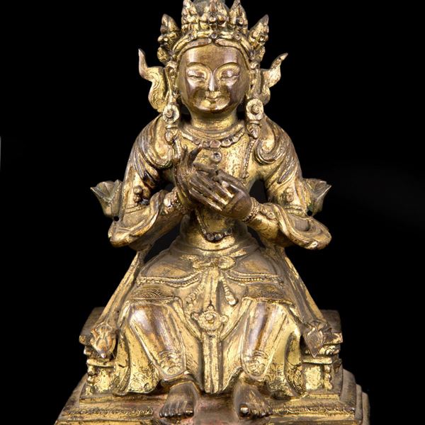 A GILT BRONZE SEATED BUDDHA, China, Qing Dynasty (1644-1911)