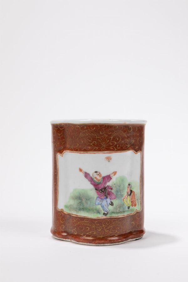 A FAMILLE ROSE PORCELAIN BRUSH POT, China, Republic Period (1912-1949)