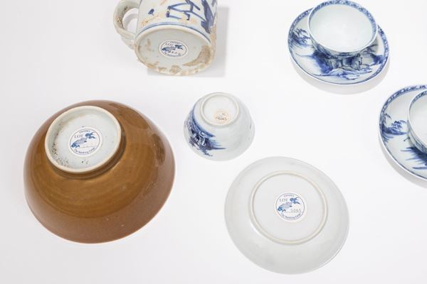 Consists of six saucers with cups, a bowl, and a mug; all bear Nanking Cargo Christie's Amsterdam label.