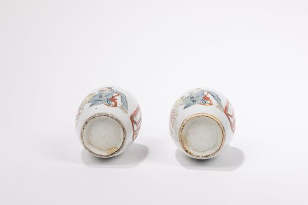 A PAIR OF SMALL FAMILLE ROSE PORCELAIN VASES, China, Qing dynasty, 18th century