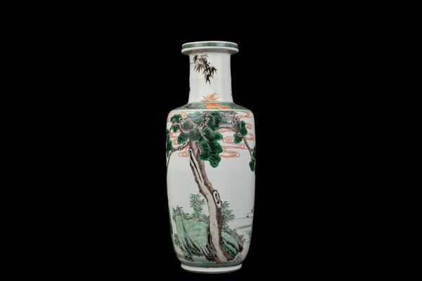 A RARE FAMILLE VERTE PORCELAIN ROULEAU VASE, China, Kangxi period (1661-1722)