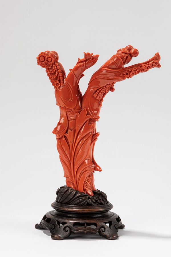 珊瑚雕塑,中国,二十世纪初 (底座有宝格丽收藏标签)