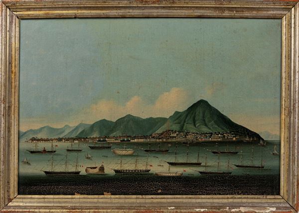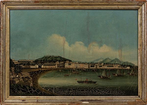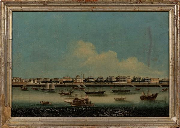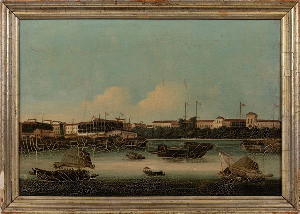 广州十三行油画(带画框),中国,清朝,十九世纪