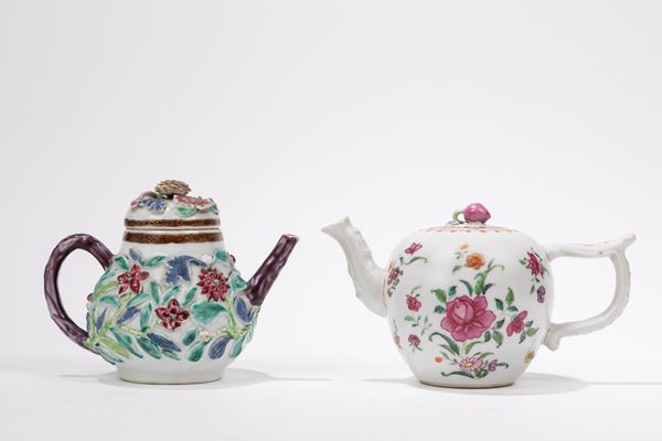 TWO FAMILLE ROSE PORCELAIN TEAPOTS, China, Qing dynasty, 18th century
