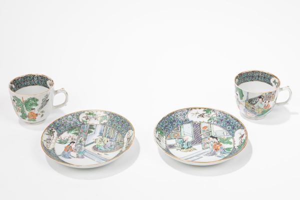 TWO PORCELAIN CUPS AND SAUCERS, China, Qing dynasty, 19th century