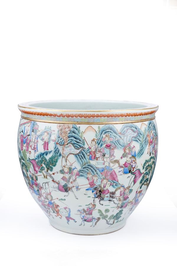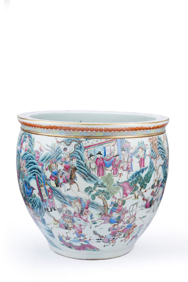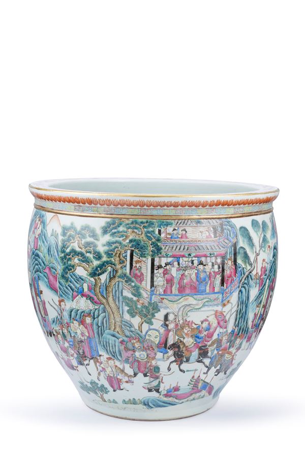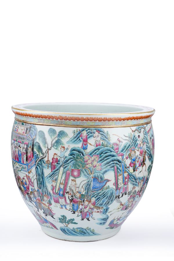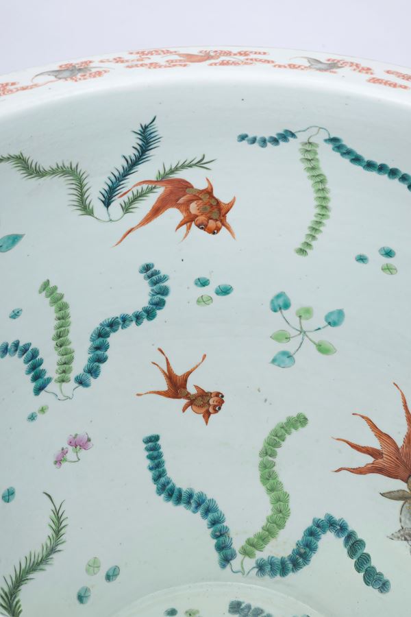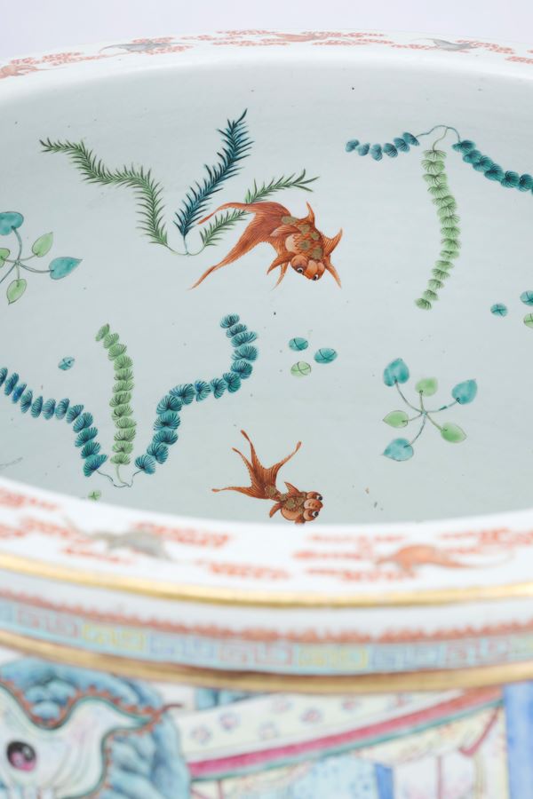 A HUGE FAMILLE ROSE PORCELAIN FISHBOWL, China, Qing dynasty, 19th century