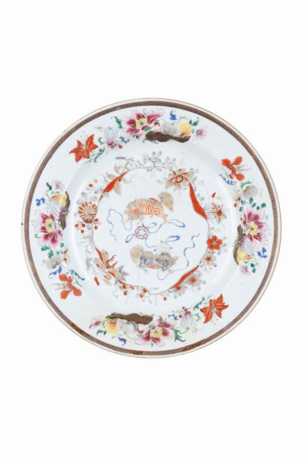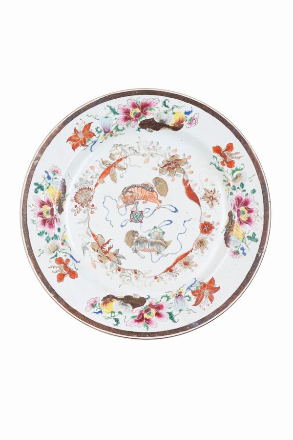 A PAIR OF FAMILLE ROSE PORCELAIN CHARGERS, China, Qing dynasty, 18th century